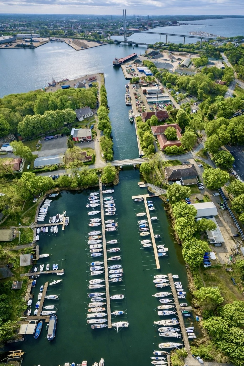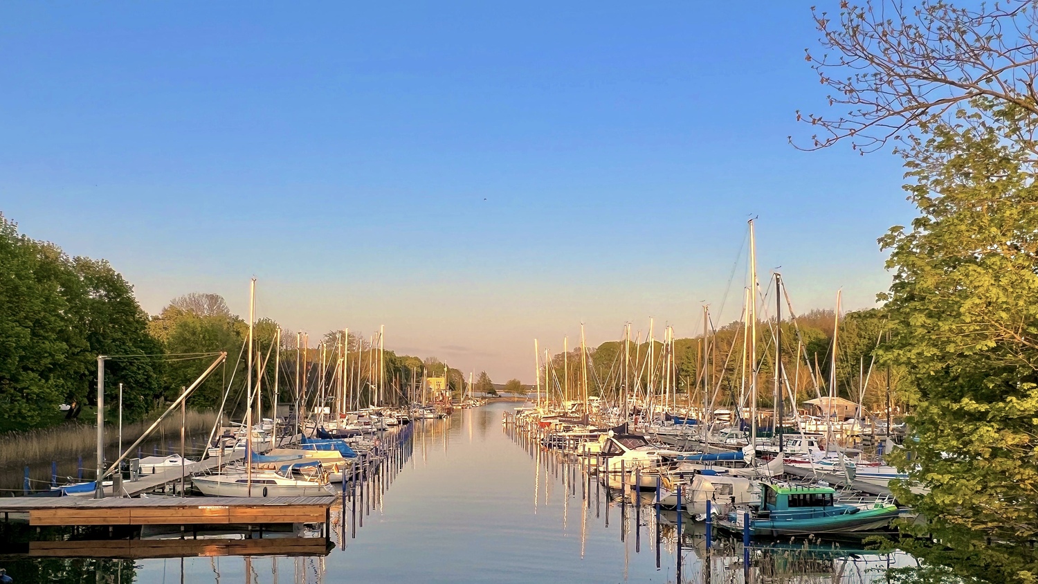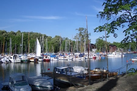 The harbor is located in a very well-protected position in the Dänholm Canal and is sheltered from all wind directions. The surrounding area consists of forest and meadows. When approaching, please proceed all the way through the canal until you see the signs for Yachtclub Strelasund e.V. at the north and south piers. The signs indicate where berths of different lengths are located. The exact widths of the berths are marked at each individual berth. The same building also houses the harbormaster’s office, sanitary facilities, as well as a washing machine and dryer. During the season, the harbormaster is on site daily and is happy to assist with any questions regarding the vessel or to provide tourist information about the region. Bicycles can also be rented from the harbormaster.